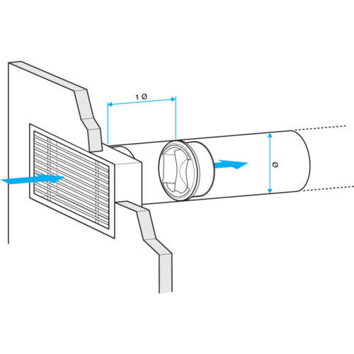 - distancia de espacio libre de cara a una rejilla, una Te, un codo: 1Ø en extracción y 3Ø en impulsión.