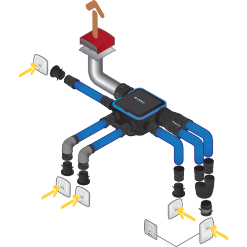 - 4 embocaduras Ø80 mm sanitarios,